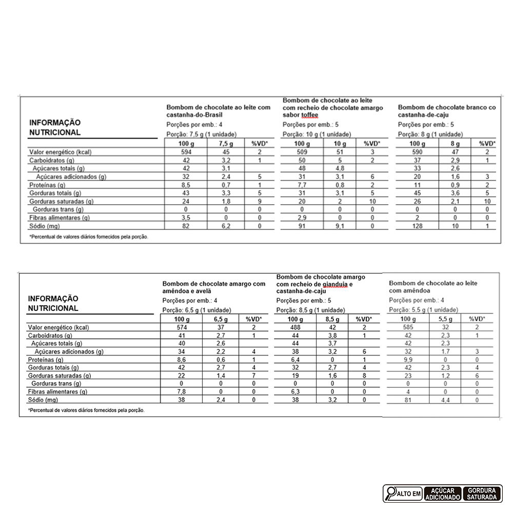 Na Bombons Collection, você encontra 6 tipos deliciosos de bombons para experimentar! São eles: Chocolate ao leite com amêndoas, Chocolate ao leite com castanhas do Pará, Chocolate ao leite com recheio de chocolate amargo e conhaque sabor toffee, Chocolate amargo com amêndoas e avelãs, Chocolate branco com castanha-de-caju, Chocolate amargo recheado com gianduia e castanha-de-caju. Escolha seu favorito! Imagem meramente ilustrativa. Produto Alcoólico. Não recomendado para menores de 18 anos