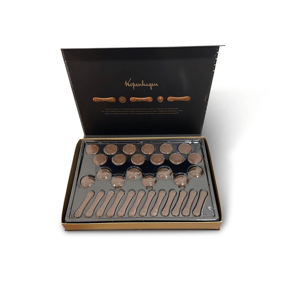 O sabor irresistível do clássico Kopenhagen para você presentear! Esta é a Caixa Coleção Língua de Gato com trufas de chocolate ao leite. Nada como demonstrar amor com chocolate, não é mesmo? Aproveite! Imagens Meramente ilustrativas. Envio de acordo com a disponibilidade em estoque, podendo conter variações de embalagens, sem alteração no peso do produto.