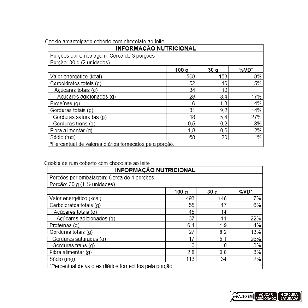 Cookies amanteigados cobertos com chocolate ao leite e cookies de rum cobertos com chocolate ao leite