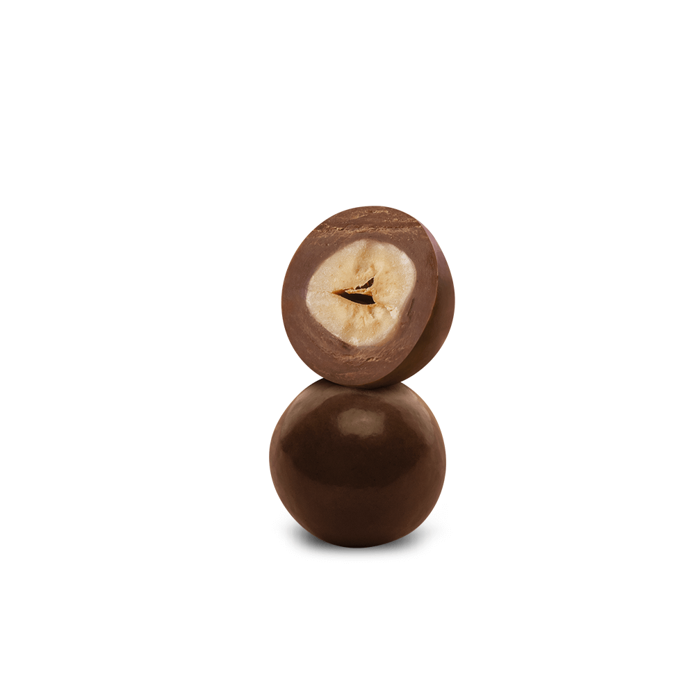 Avelãs cobertas com chocolate ao leite.