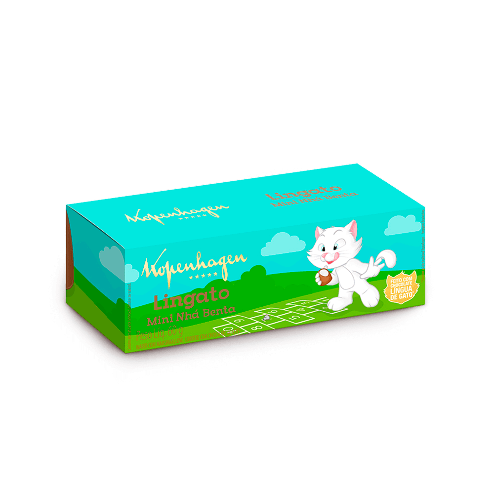 Toda a qualidade e sabor dos clássicos chocolates Kopenhagen em uma versão perfeita para crianças. Esse é o Kit Mini Nhá Benta Lingato: produzido com Marshmallow, com base de wafer e coberto com chocolate ao leite Língua de Gato. Neste kit, você encontra duas unidades para os pequenos!
