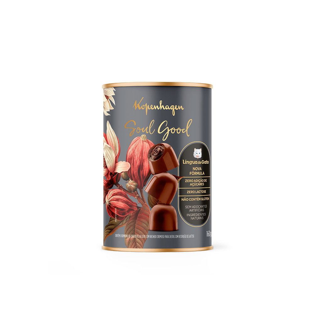 Contém: 1 Creme De Língua De Gato Soul Good Spreads 165G, 1 Língua De Gato Soul Good 85G, 1 Bombons Língua De Gato Soul Good 160G e 1 Caixa Tamanho M