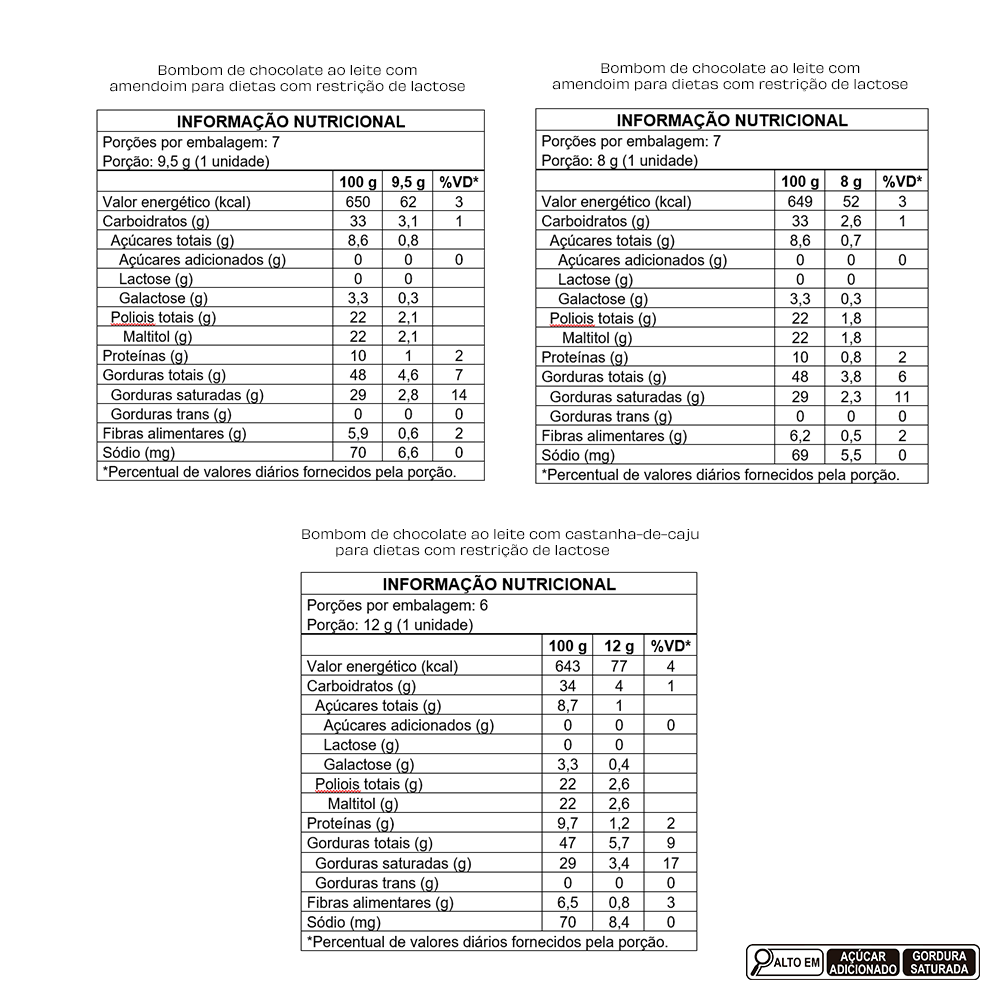 Bombons de chocolate ao leite com amendoim, amêndoa e castanha-de-caju, especialmente formulados para dietas com restrição de lactose. Com zero açúcar, sem adoçantes artificiais e feitos com ingredientes naturais, nossos bombons oferecem uma experiência saborosa e saudável. Perfeitos para quem busca qualidade e bem-estar!