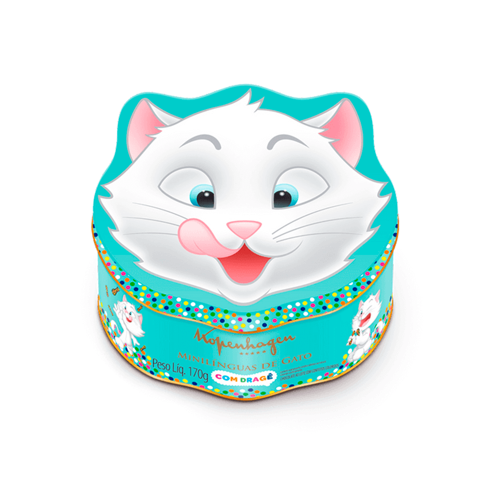 O clássico Kopenhagen, Língua de Gato, também tem versão para as crianças! É a Lata Lingato, com mini Línguas de Gato ao leite e dragês coloridos. Mais sabor e qualidade para os pequenos, aproveite!