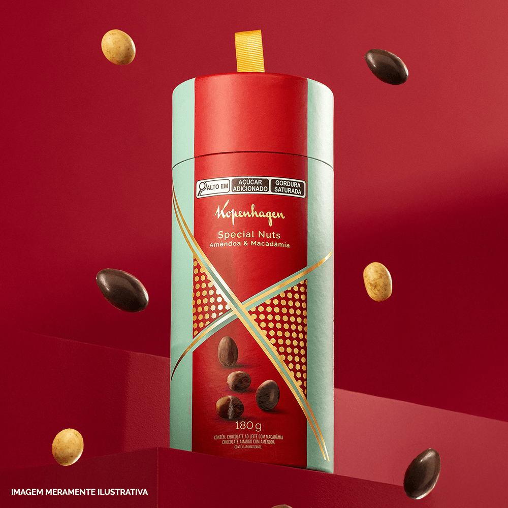 Sabor e sofisticação em cada mordida! A Lata Nuts 180g combina amêndoas crocantes cobertas com chocolate amargo e macadâmias envolvidas em chocolate ao leite. Uma seleção premium de nuts drageadas perfeita para presentear ou se deliciar a qualquer momento. Experimente!