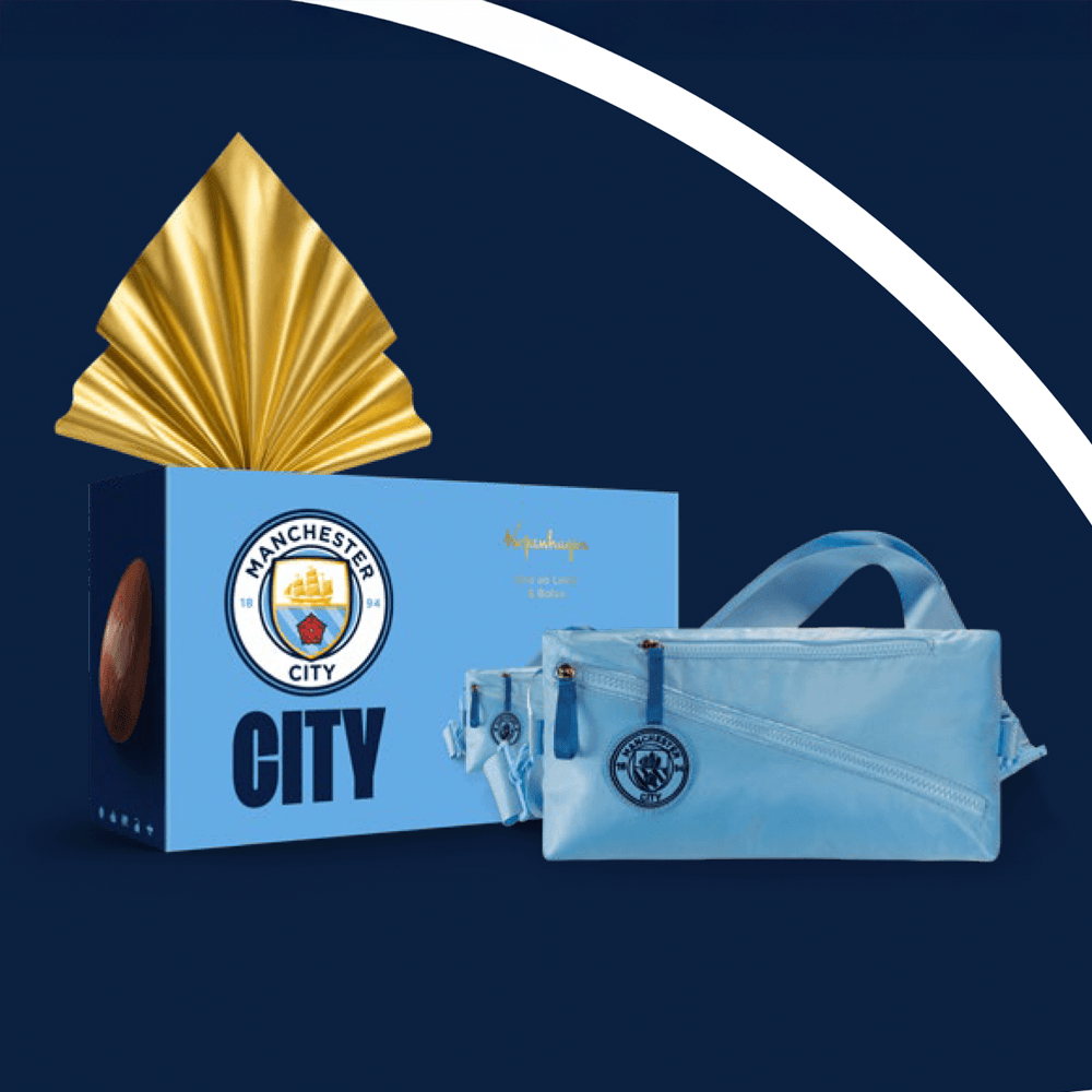O sabor do chocolate ao leite Kopenhagen encontra a paixão pelo futebol. O Ovo Manchester City vem com uma bolsa exclusiva, ideal para levar chuteiras ou qualquer item do dia a dia com praticidade e estilo. Um presente oficial para quem carrega o time europeu no coração.