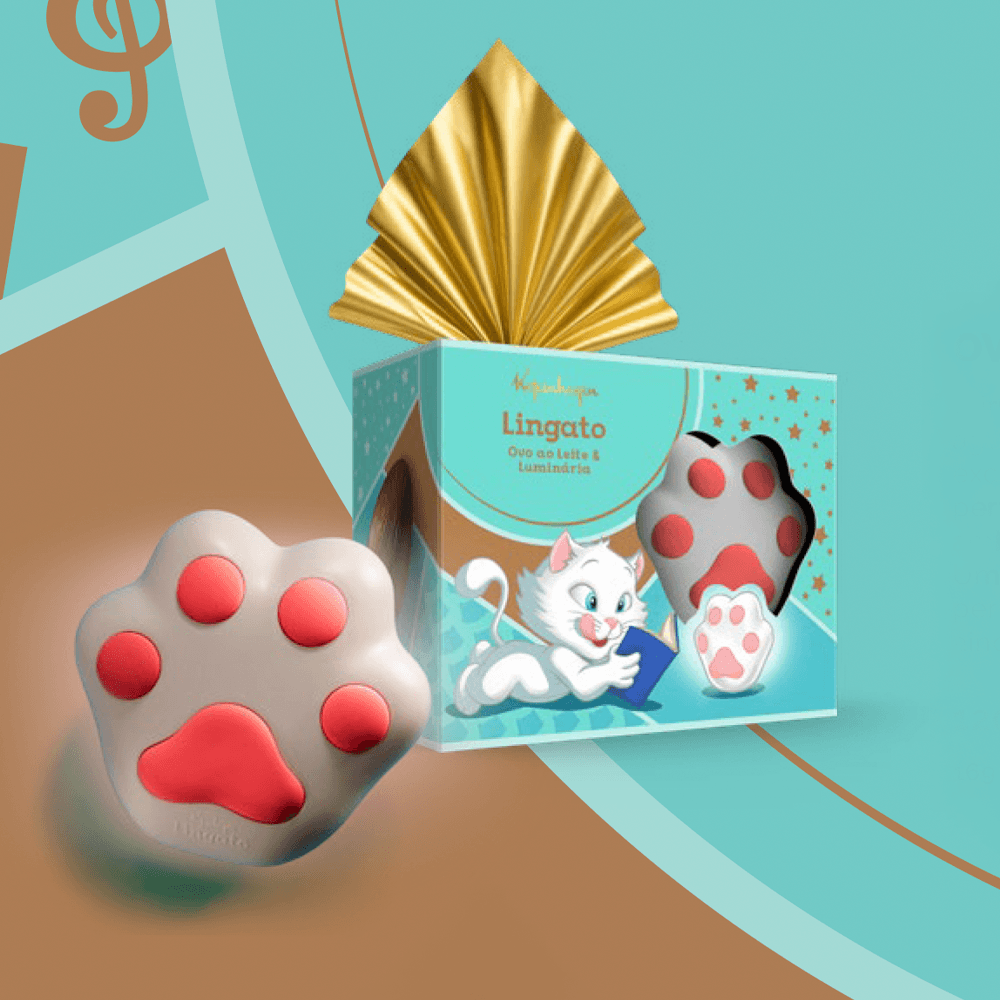 O irresistível chocolate ao leite Lingato agora vem acompanhado de uma luminária exclusiva em formato de patinha de gato, perfeita para decorar quartos ou criar um ambiente aconchegante. Um presente fofo, saboroso e cheio de personalidade, ideal para tornar a Páscoa ainda mais divertida e memorável.