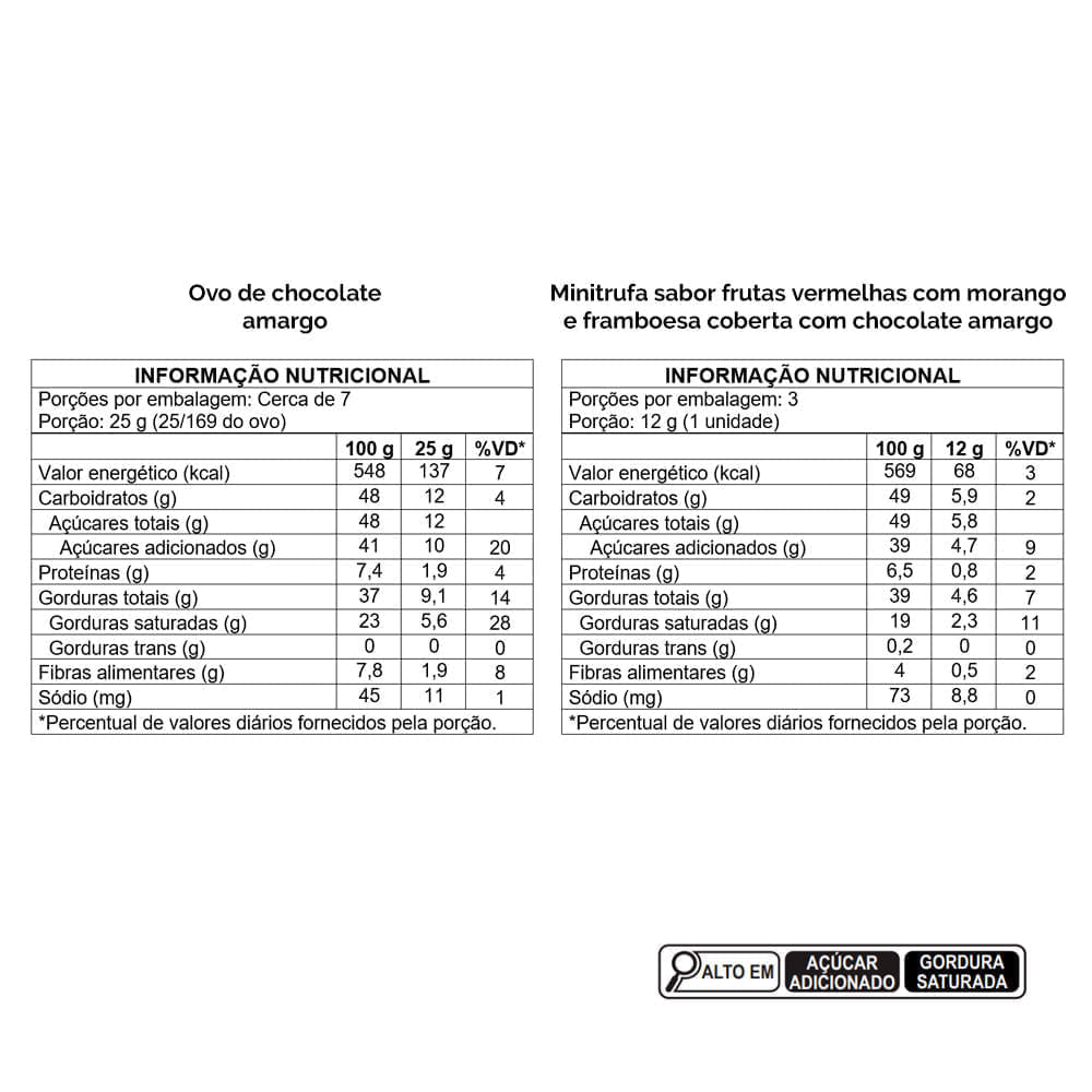 O Ovo de Páscoa Mil Delícias Amargo é a escolha perfeita para quem procura um presente de Páscoa que combina qualidade e sabor intenso. Contém: 1 Ovo de chocolate amargo e 3 Minitrufas sabor frutas vermelhas com morango e framboesa cobertas com chocolate amargo.