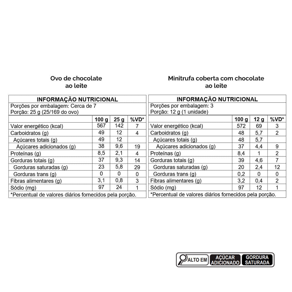 Ovo de chocolate ao leite acompanha 3 Minitrufas chocolate ao leite.