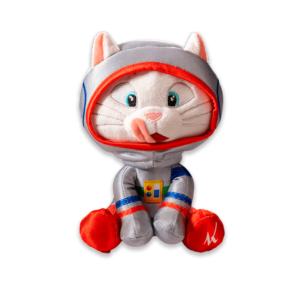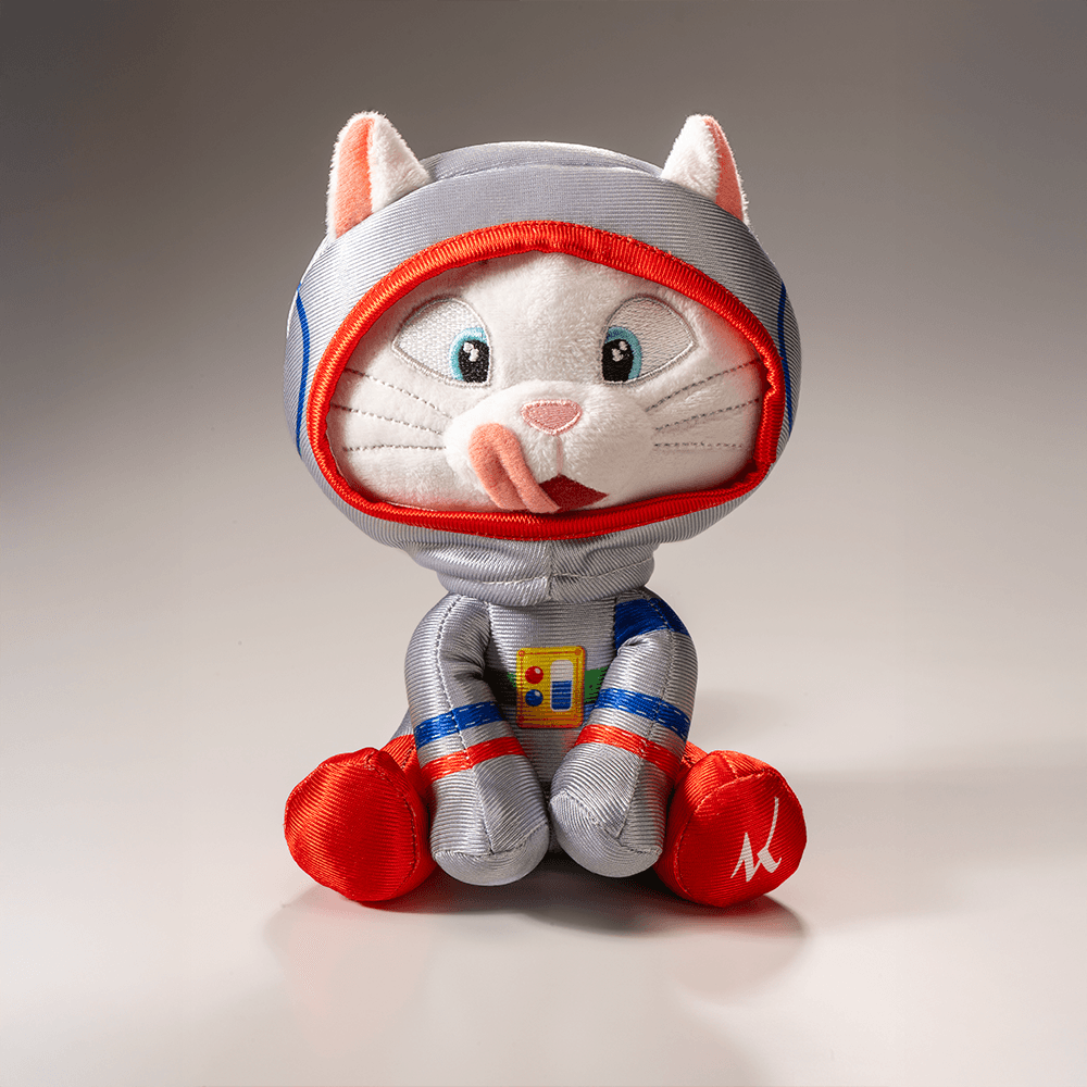 Linda pelúcia com o mascote Kopenhagen, o divertido gatinho Lingato em pelúcia de astronauta para diversão dos pequenos e toda a família.