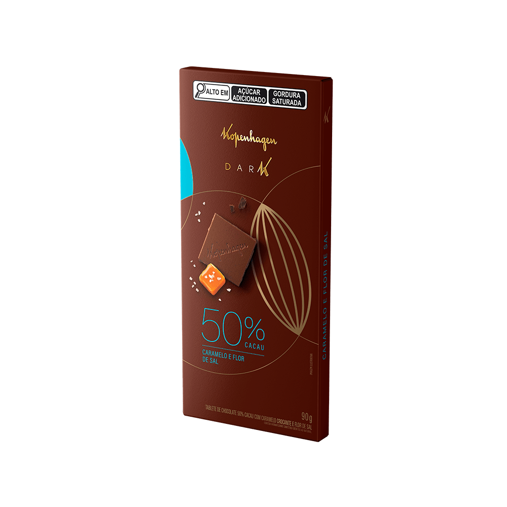 Chocolate amargo 50% com caramelo e flor de sal.