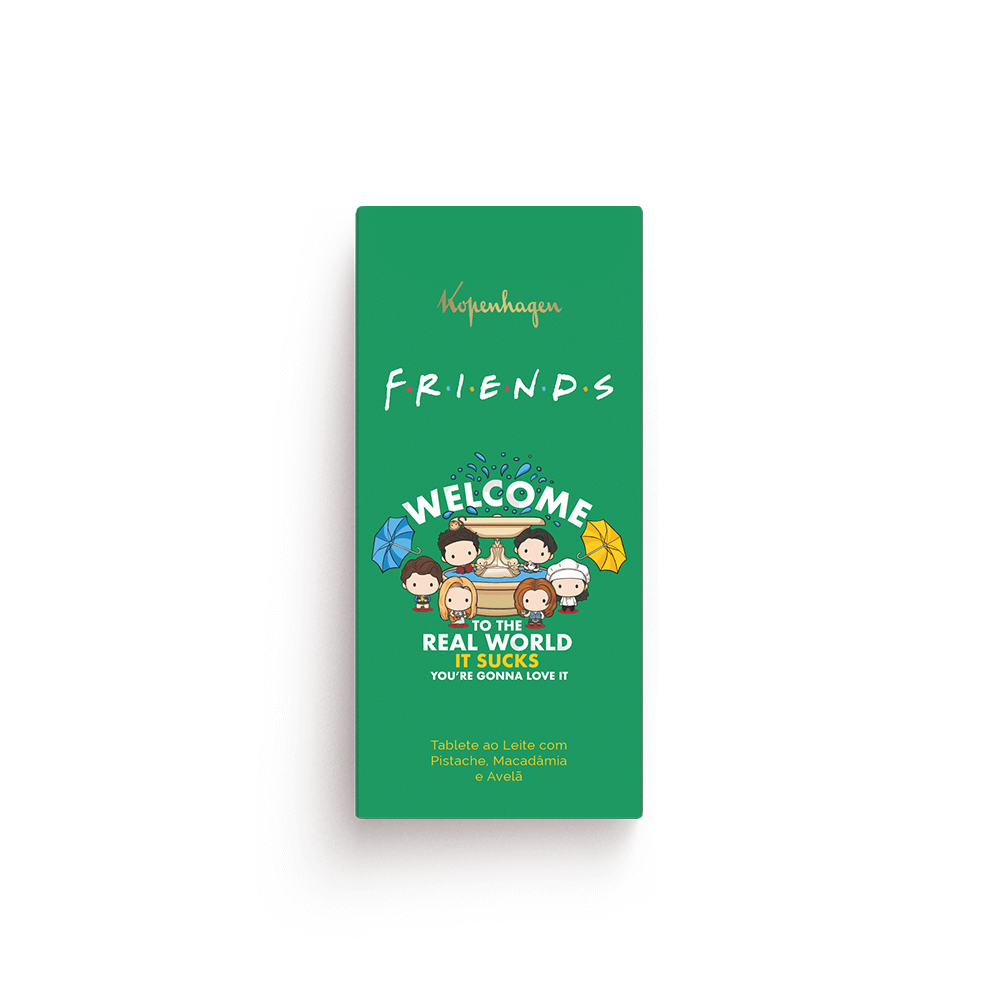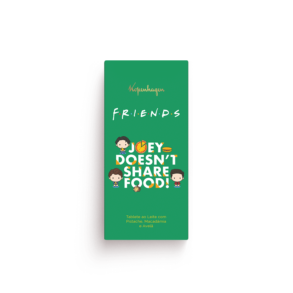 Uma das séries mais populares do mundo comemora seus 30 anos em uma parceria de sucesso com a Kopenhagen. Conheça a linha Tabletes Friends! inspirados na inesquecível e nostálgica série, conta com deliciosos tabletes branco, ao leite e agregados, e minitabletes com embalagens exclusivas. Certamente, o presente perfeito para você, ou seu Friend! Escolha seu favorito!