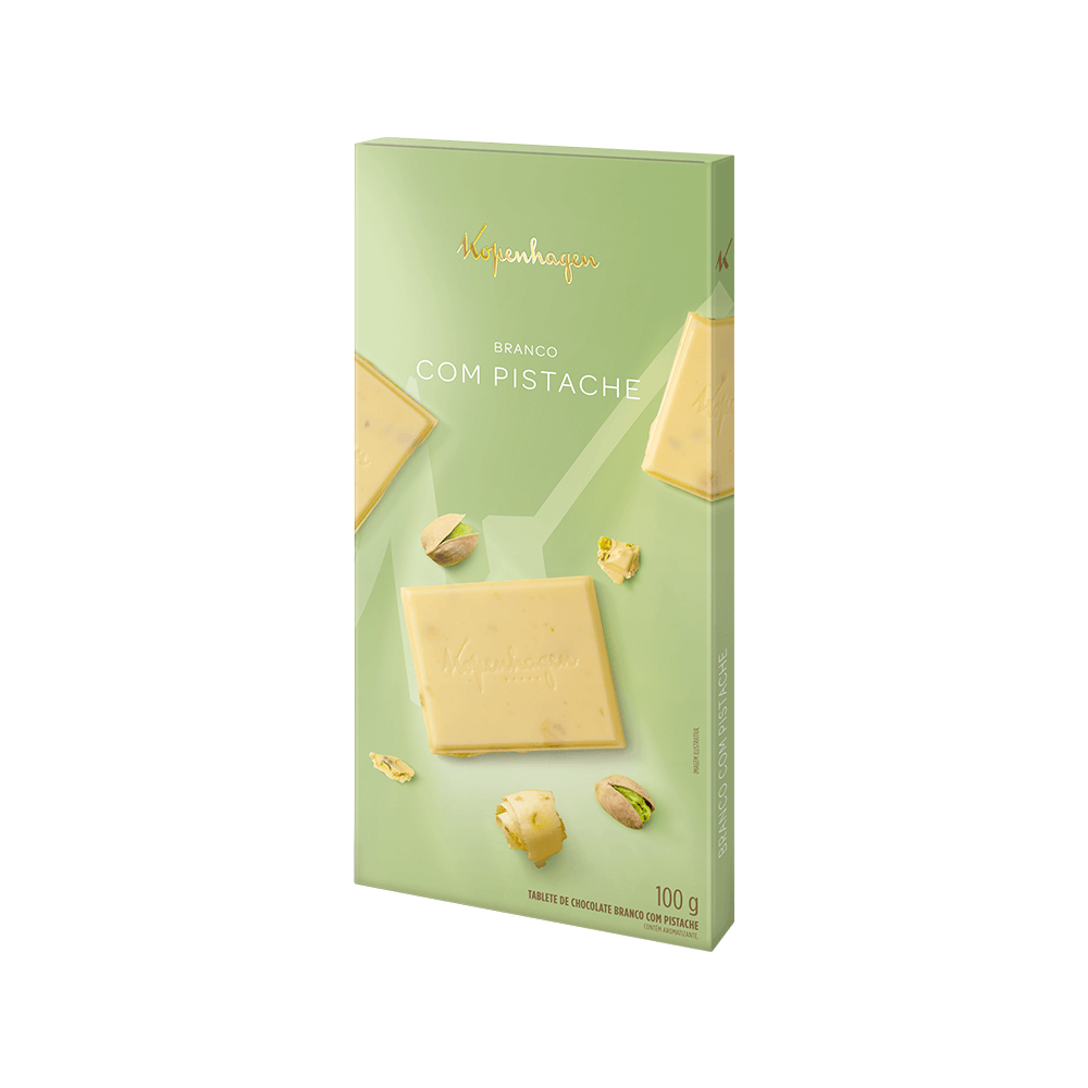 Qualidade e sabor Kopenhagen na versão tablete! Este é o Tablete Branco com Pistache. Perfeito para quem gosta da deliciosa combinação entre chocolate e nuts! Experimente e se surpreenda.