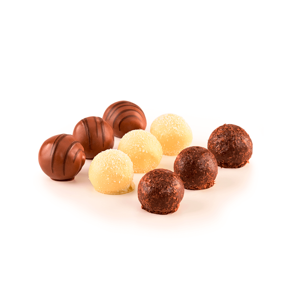 O presente perfeito para quem você ama! Com as Trufas Artesanais, você surpreende com uma seleção de trufas nos sabores: chocolate ao leite e decorada com chocolate amargo, coco coberta com chocolate branco e decorada com coco ralado e groselha negra coberta com chocolate amargo e decorada com morango desidratado. Demonstrar amor com chocolate é mais gostoso, aproveite! Imagem meramente ilustrativa.